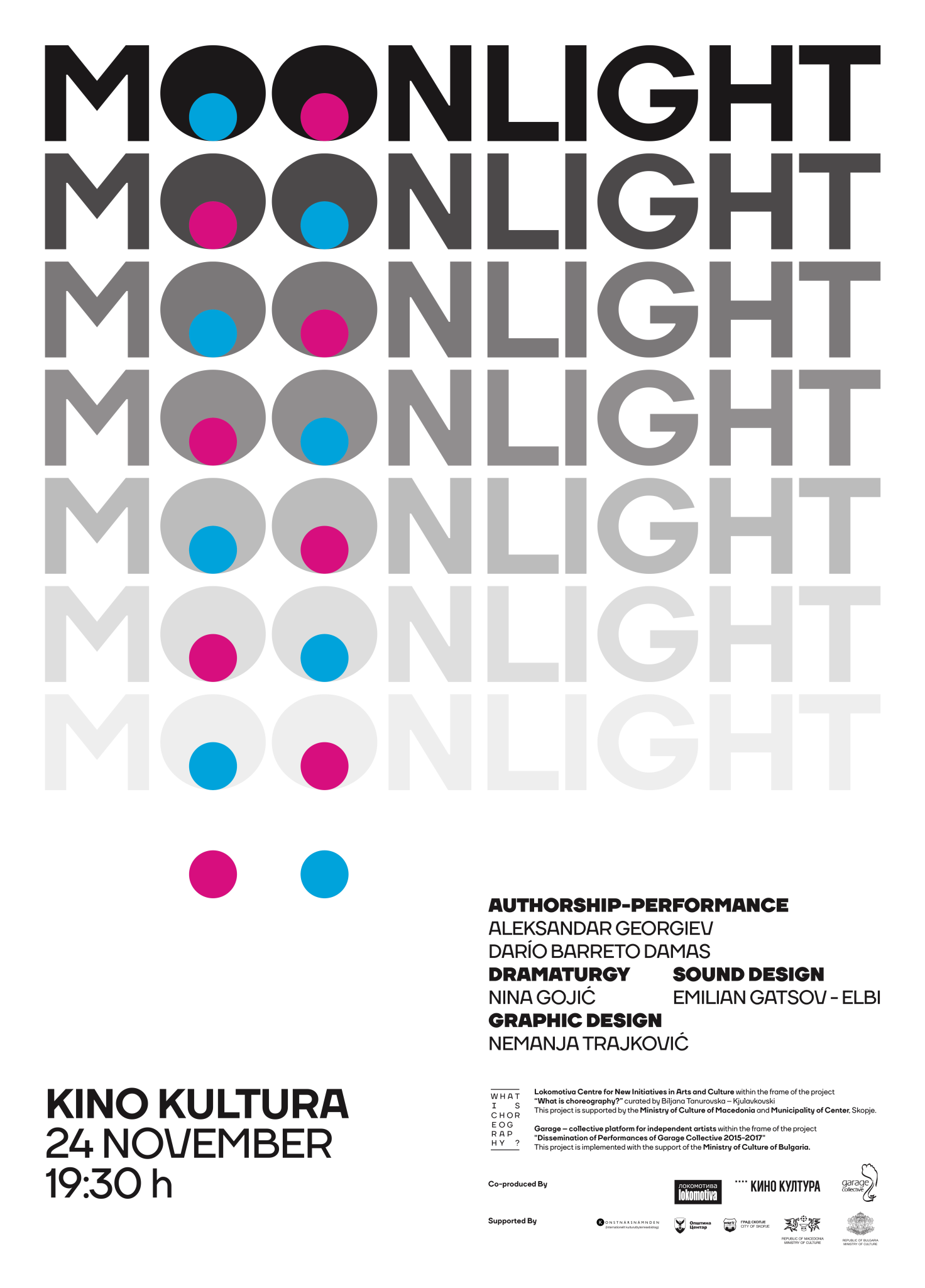 MOONLIGHT is initiated and developed by choreographers/dancers Aleksandar Georgiev (Ace) and Darío Barreto Damas. As an artistic partnership, they are interested in co-authorship creation within family constellations. They are busy with the facilitation of poetic spaces, triggering and stressing the questioning of alternatives lines of thinking. They operate around Stockholm (SE), Skopje (MK), Sofia (BG) and Tenerife (SP).